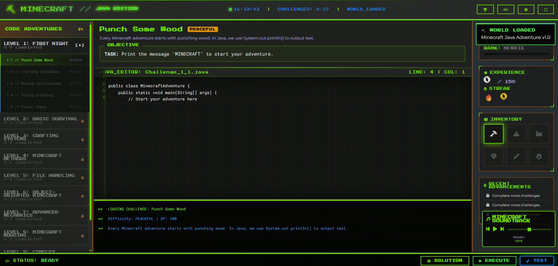 Master the art of Java programming through a voxel-inspired coding journey! Transition from a "Newbie" to a "Java Architect" as you complete challenges inspired by the mechanics of the world's most popular block-building game.